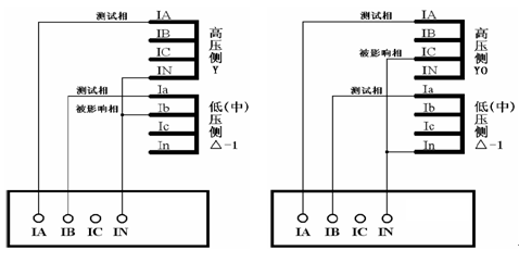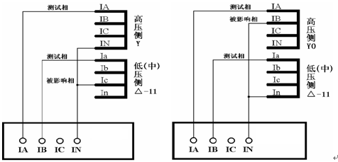 △侧的测试相与被影响相按相间短路接线 Y0侧零序修正,Y侧的测试相与被影响相按相间短路接线